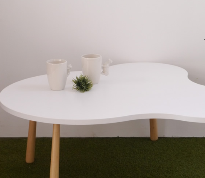 遊び心のあるアシンメトリーな天板が印象的なおしゃれなテーブルです。雲の形のようなふんわりとした曲線がポップで、インテリアの主役になってくれるでしょう