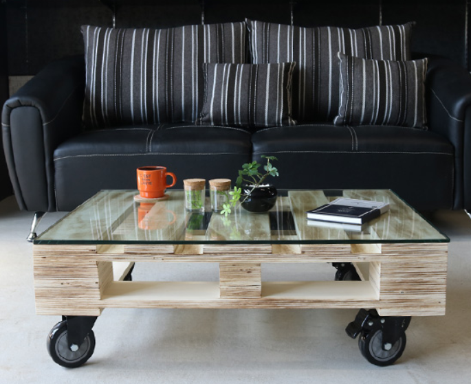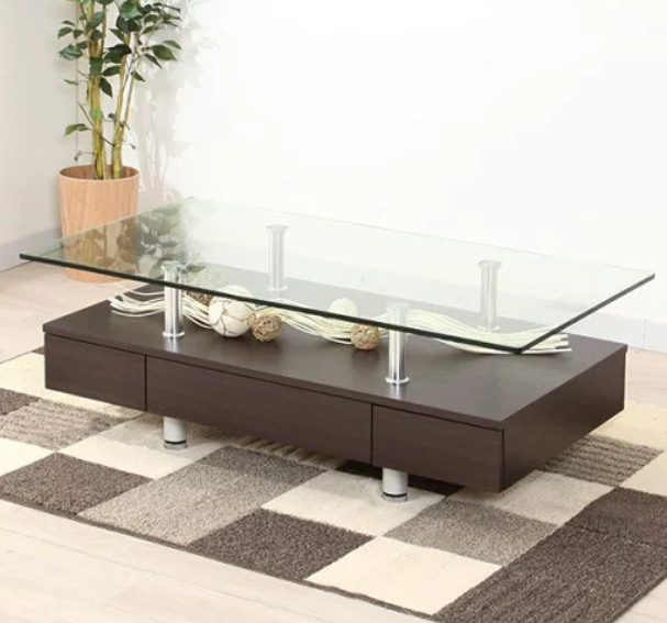 ガラス天板を木材と合わせたモダンなデザイン