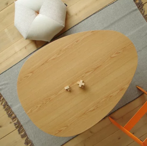 柔らかく丸みのある印象を与えるたまご型の天板と、円すい脚ですっきりした印象を与えるおすすめのローテーブル。安心の国産天然素材を使っているので、木本来のぬくもりを感じながら使用できます。