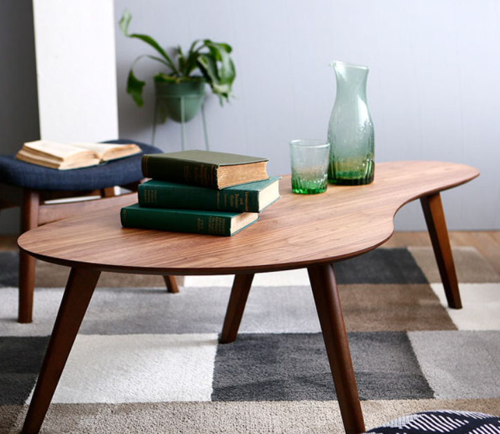 木製のテーブルは他の人ともかぶりがち。おしゃれな形の豆型テーブルなら遊び心を感じられます。優しい木目調の天板に、ヴィンテージ感も感じられる細身の脚はとてもおしゃれ。
