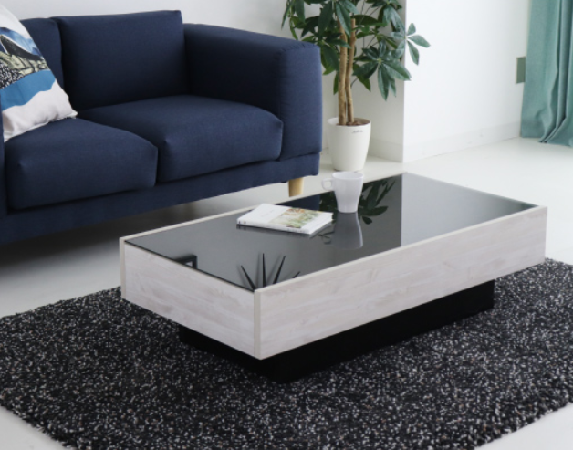 ローテーブルの天板をガラス製にすることで、床との境界がなくなり、パッと見た時に部屋を広く感じさせる視覚効果があります。天板がガラス製でもガラス以外のパーツの素材や色で、大きな違いが生まれます。