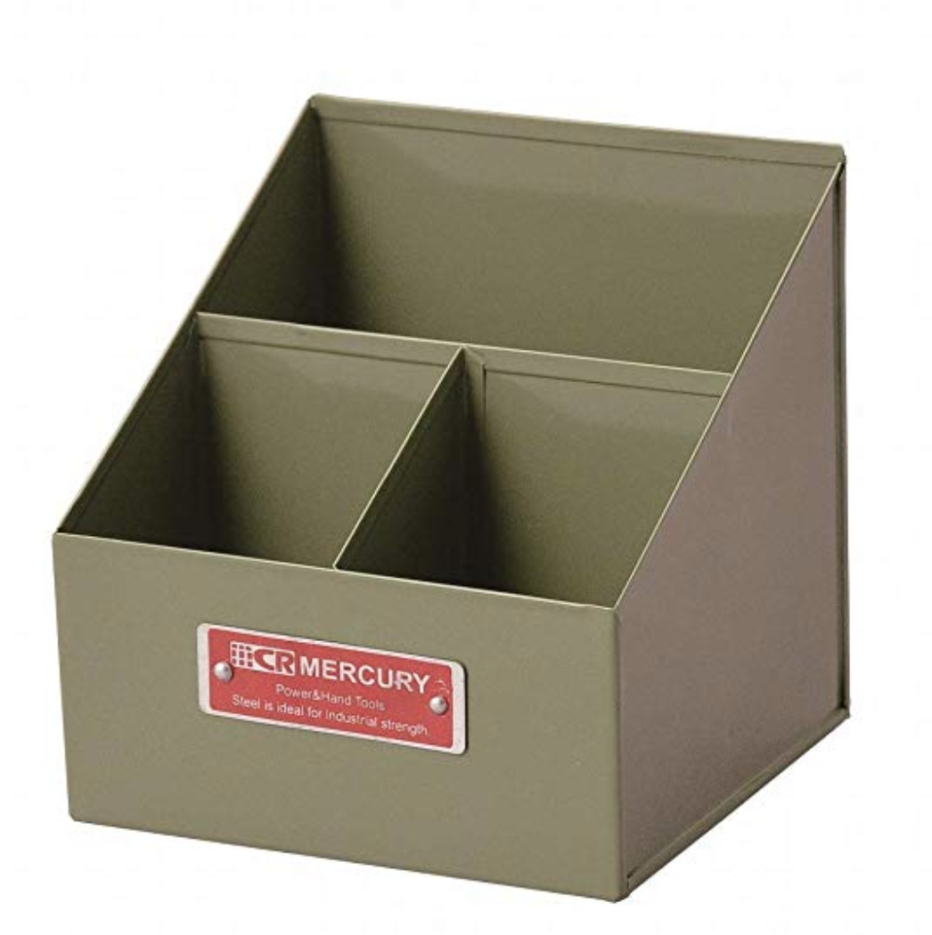 スチールのペン立ては、おくだけで一気に雰囲気は変わります。こちらは特に一枚のスチールを曲げただけのような無骨さがメンズライクでかっこいい印象。ペンを必要数しか刺せないのも魅力の一つです。