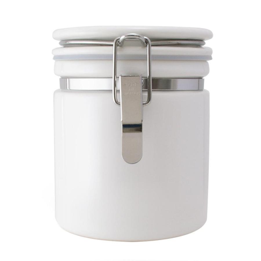 光を通さない陶器製のボディと密封性の高い金属製留め具により、コーヒーの鮮度と香りを長期間守ります。陶器製は傷が付きにくい材質のため、美しい光沢が永く続くことも特徴です。中身が見えないので、生活感を隠して食材を収納したい方にとくにおすすめです。