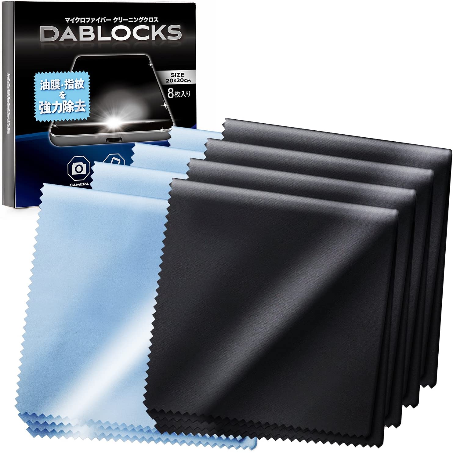 • DABLOCKS マイクロファイバークリーニングクロス 8枚セット(黒4枚、水色4枚)