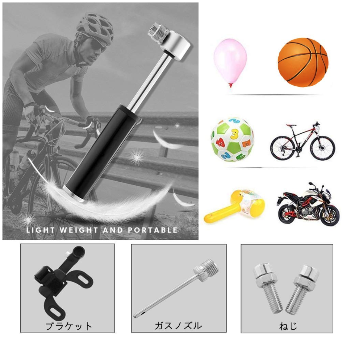 X.A 携帯ポンプ 仏式・米式バルブ対応 軽量 ボール 浮き輪 適応