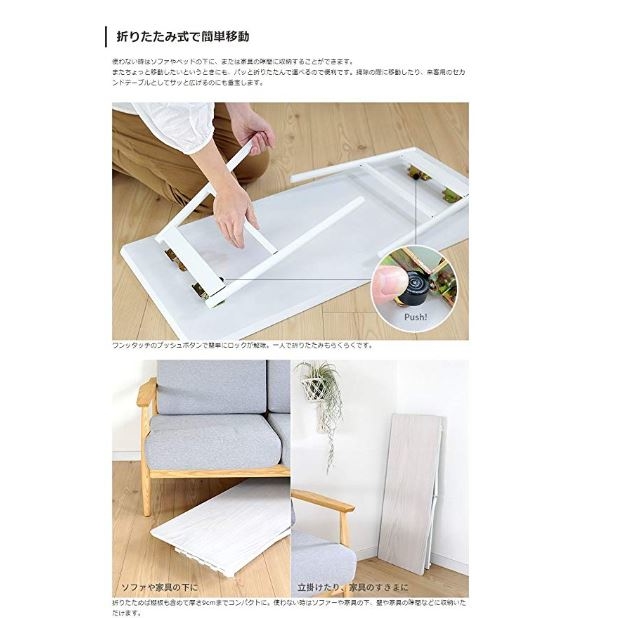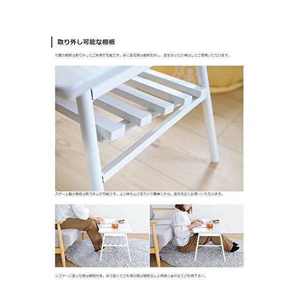 快適ホームズ 折りたたみテーブル ホワイト 棚付き 01-008WH