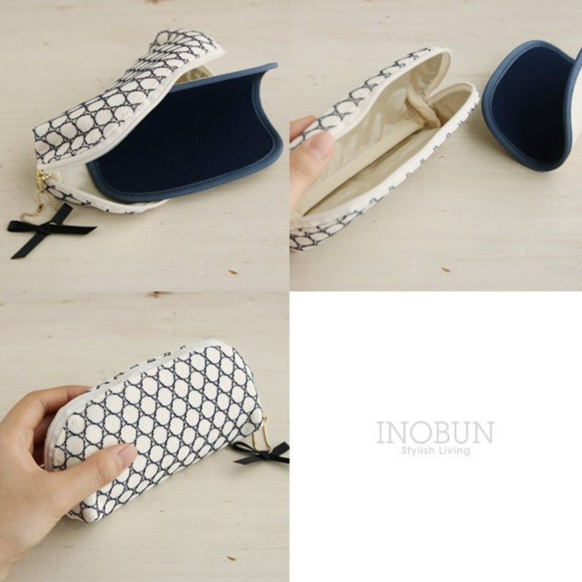 イノブンオリジナル ドットリボン メガネケース