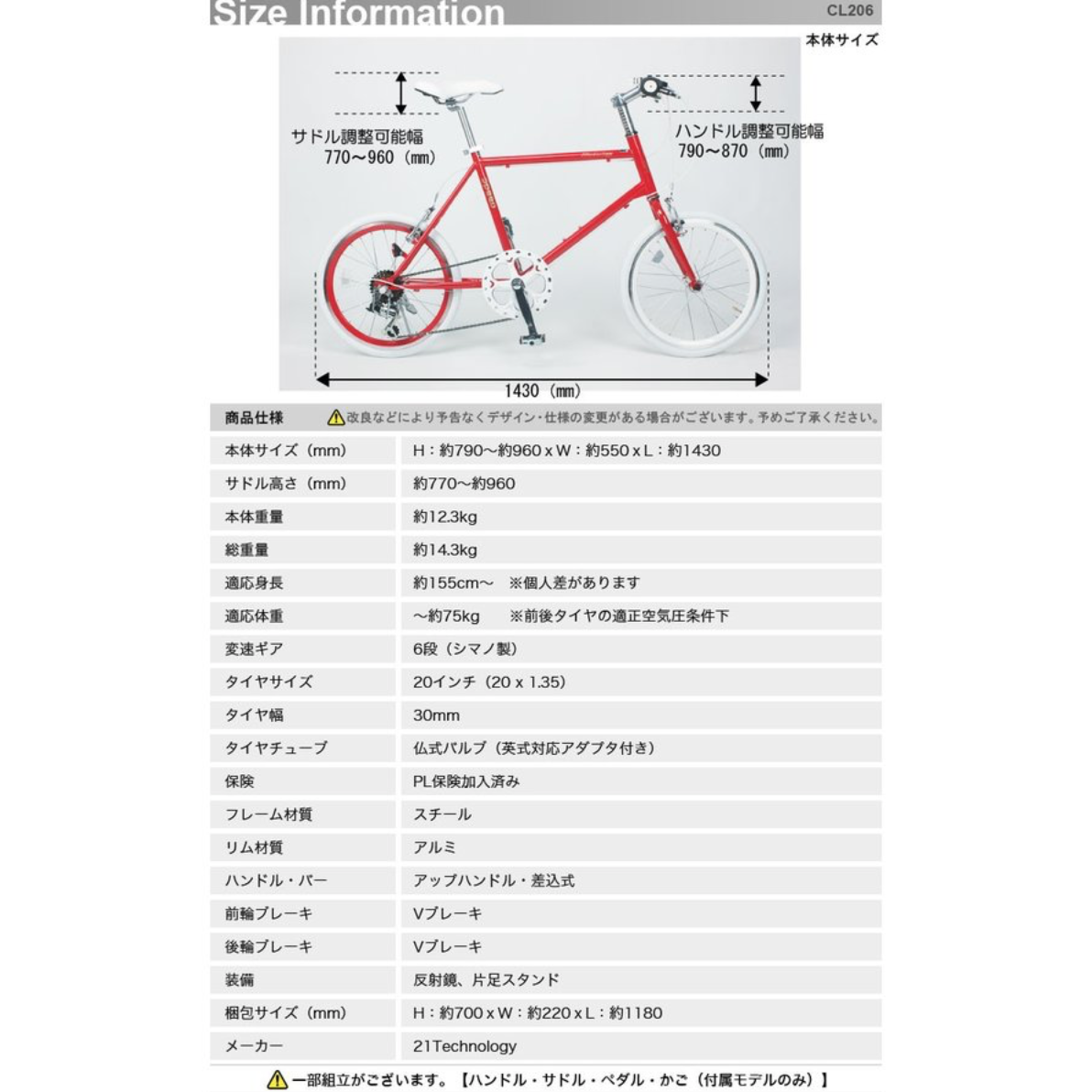 ミニベロ 自転車 シマノ6段変速 CL206