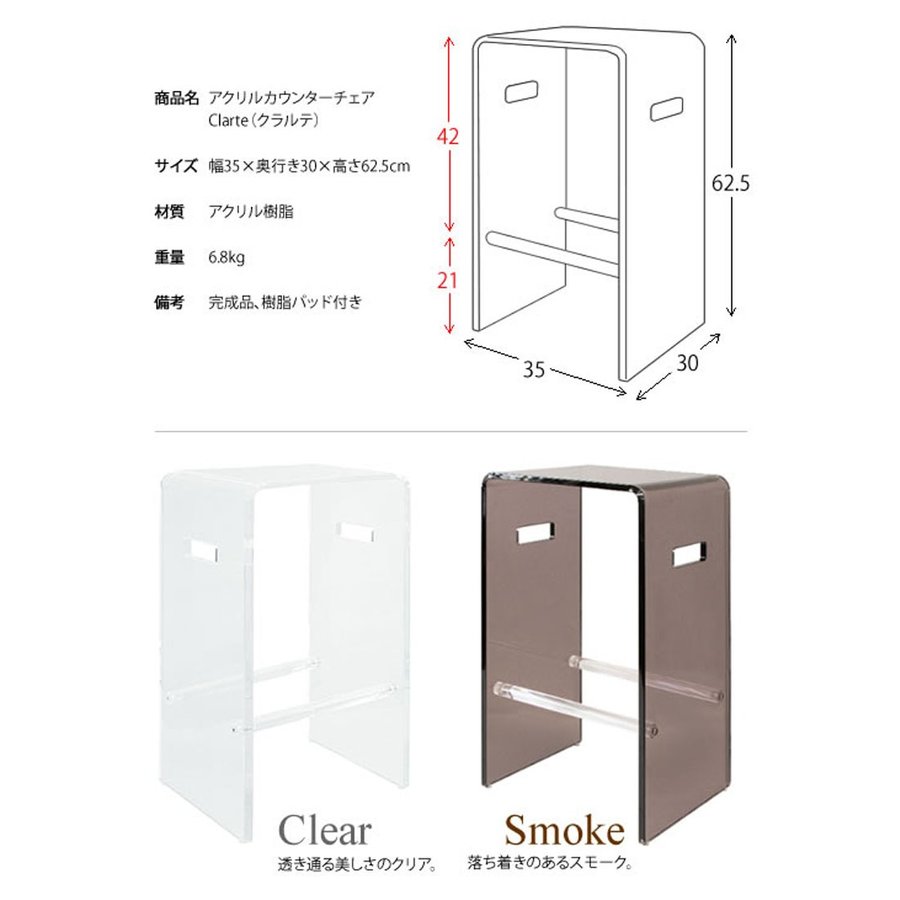 アクリルカウンターチェア Clarte KNC-AC35