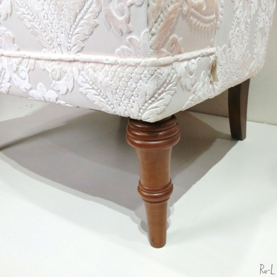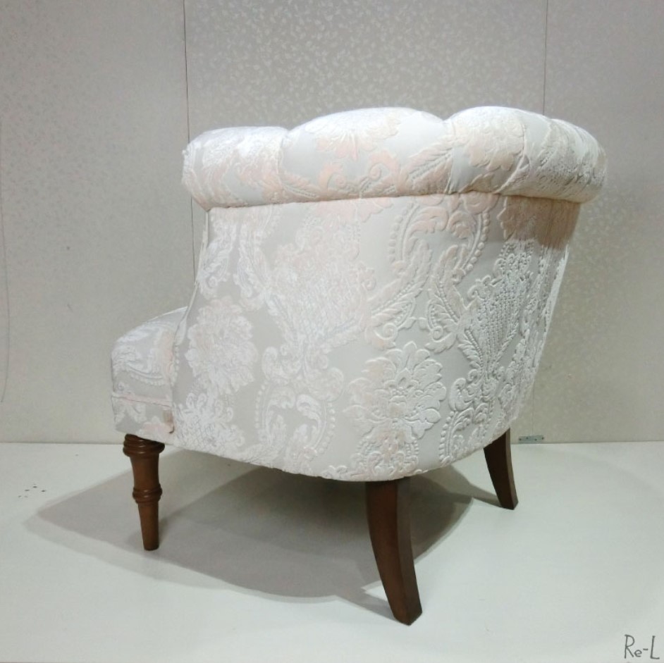 上質なファブリックを使用した優雅なサロンチェア。白いファブリックが清潔感を際立たせ、どっしりとしたサロンチェアながら圧迫感を感じさせません。ゲストルームや寝室、パウダールームでくつろぎの時間をご一緒に。