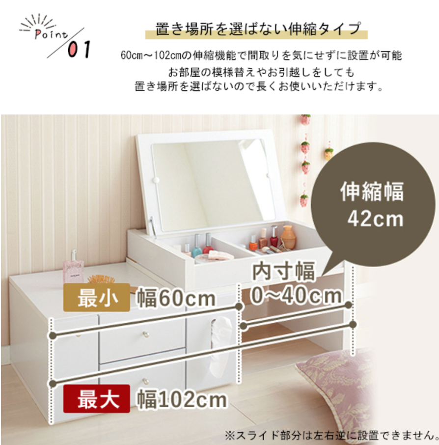 生活雑貨 伸縮ドレッサー ロータイプ