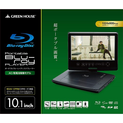 グリーンハウス ポータブルブルーレイプレーヤー 10.1型ワイドTFT液晶(LED) GH-PBD10D-BK