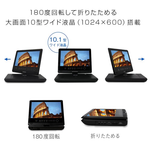 旅行中の電車の中や、旅先のホテルでBDやDVDが見たくなった時に使いたいポータブルプレーヤー。フル充電で3時間駆動するので、電源がない場所でも使えます。