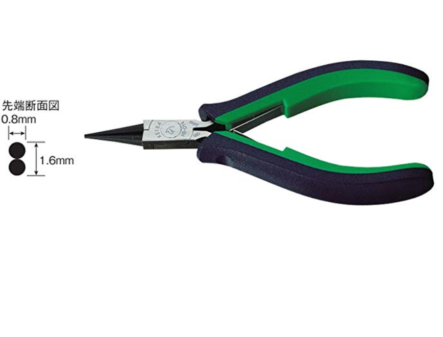 高級鋼材マルトロイを使用し、硬度の高い鋼材で耐久性抜群のケイバの丸ヤットコです。先細仕上の先端でもよじれにくく、綺麗にワイヤーを丸めることができます。