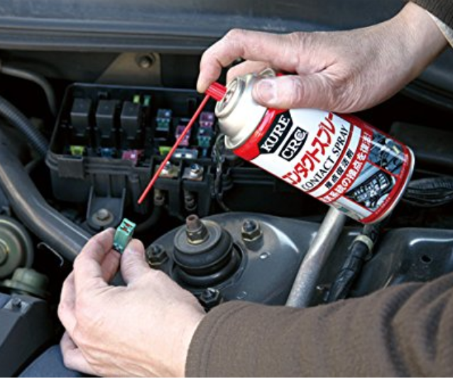 こちらは自動車やバイクのコネクターからテレビやオーディオの精密機器まで幅広く使用できるスフレ−タイプの接点復活剤です。