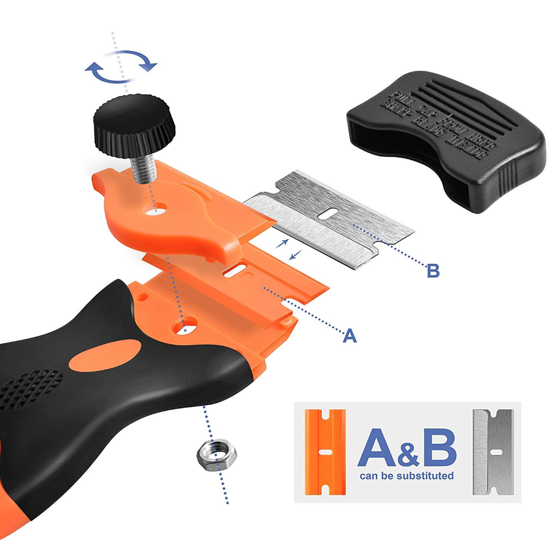 こちらは手のひらにおさまる程のコンパクトサイズのスクレーパーです。不銹鋼替刃とプラスチック替刃がそれぞれ10枚づつ付属しており、当分の間替刃を買う必要なくお使いいただけます。amazonでは上位の人気商品で価格の安さも魅力のひとつです。キッチンの掃除やDIYでも活躍します。また、プラスチック替刃もついているためシールやステッカー剥がしにも◎。刃を変えることで用途の幅が広がるとても便利な商品です。