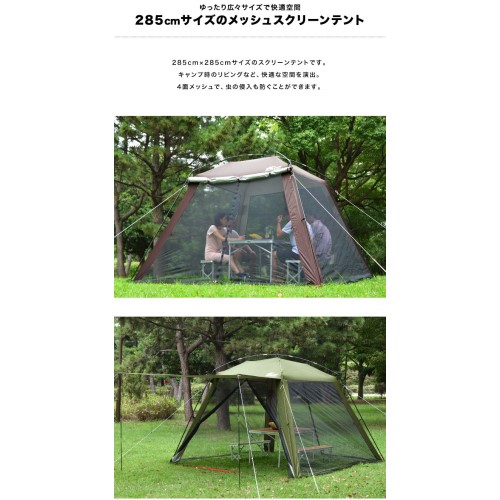 FIELDOOR ワンタッチスクリーンテント 285×285cm 2色