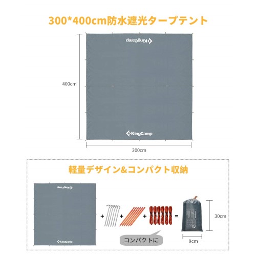 KingCamp 防水遮光タープテント 超軽量 300×400cm 2~6人用