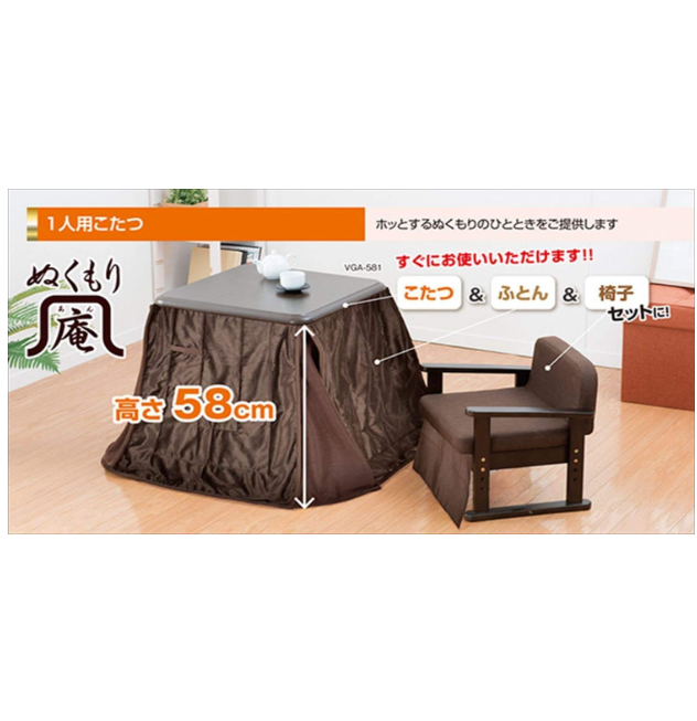 山善 一人用こたつ 3点セット ぬくもり庵 VGA-582(DB)