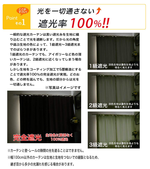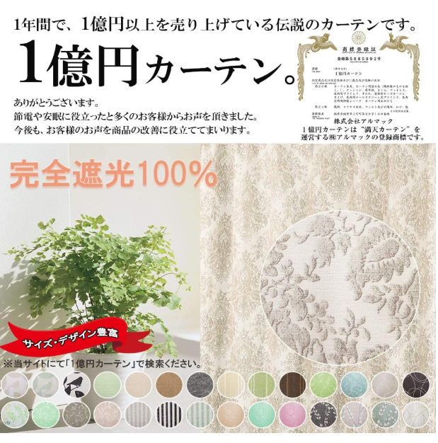 満天カーテン 完全遮光100% アラベスク アイボリー 100x195cm 2枚入