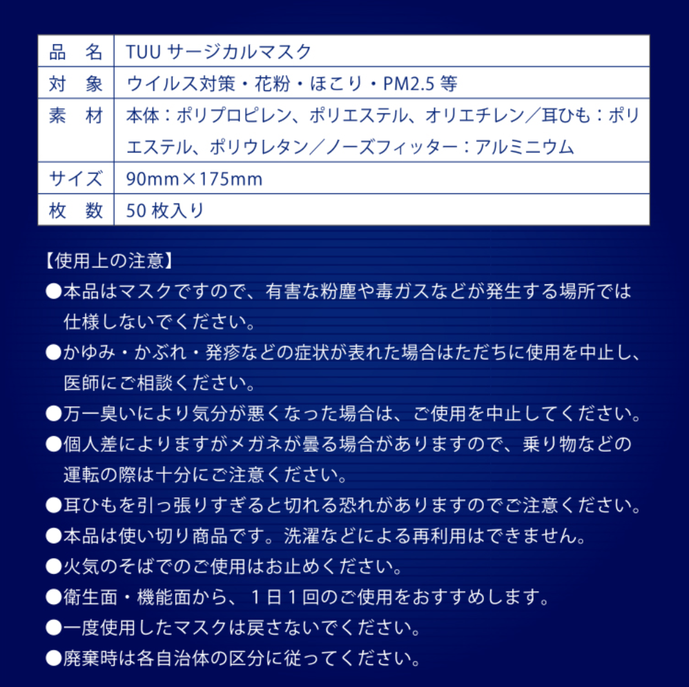 TUU サージカルマスク【50枚×2個セット】