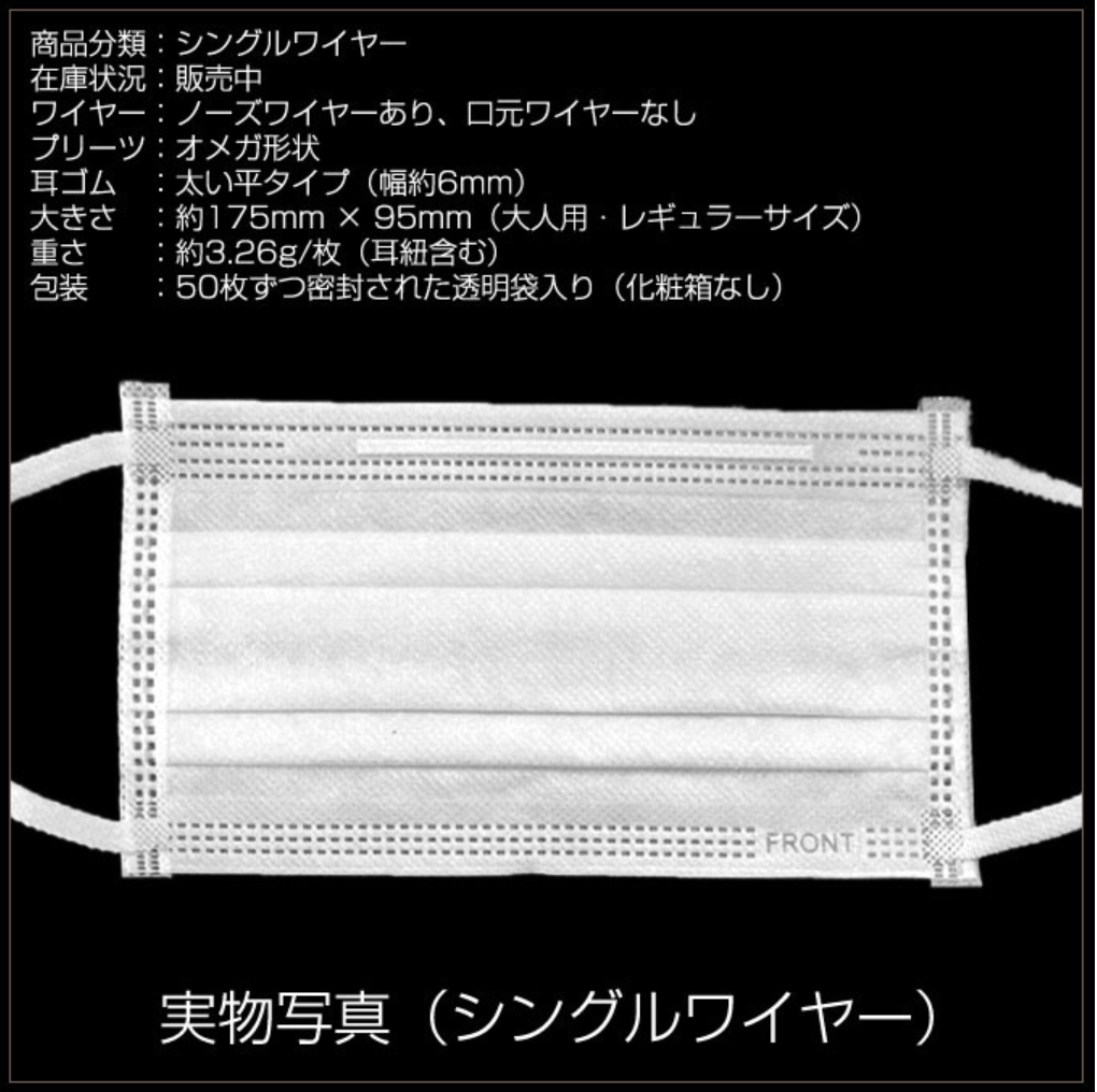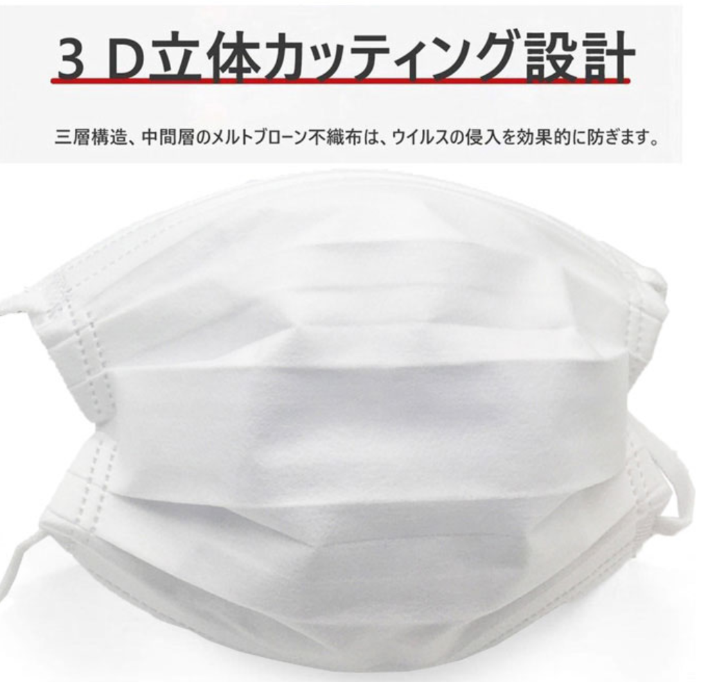 三層構造 不織布マスク白 50枚【オメガ形状・平ゴム仕様・在庫あり】