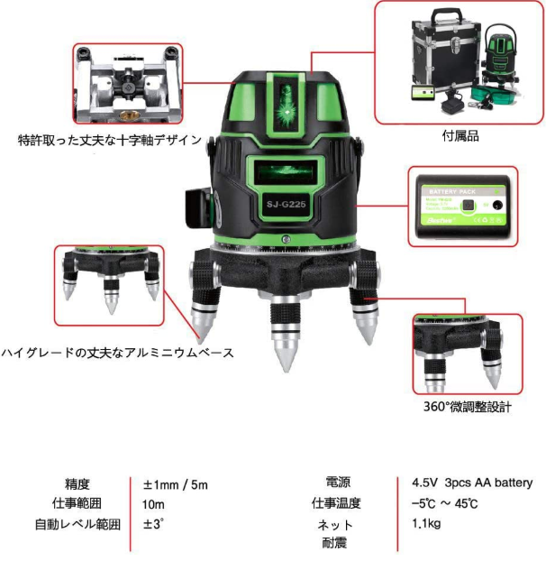 5ライン グリーンレーザー墨出し器