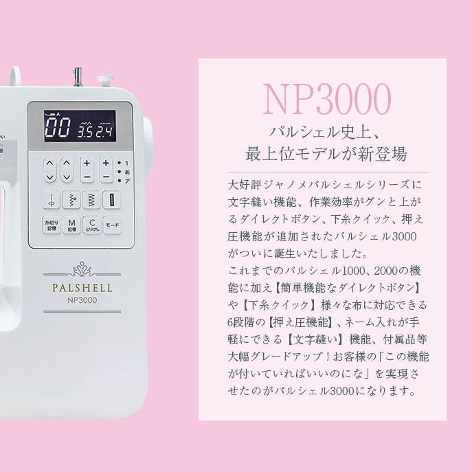 ジャノメコンピュータミシン「NP3000」パルシェルシリーズ最上位機種
