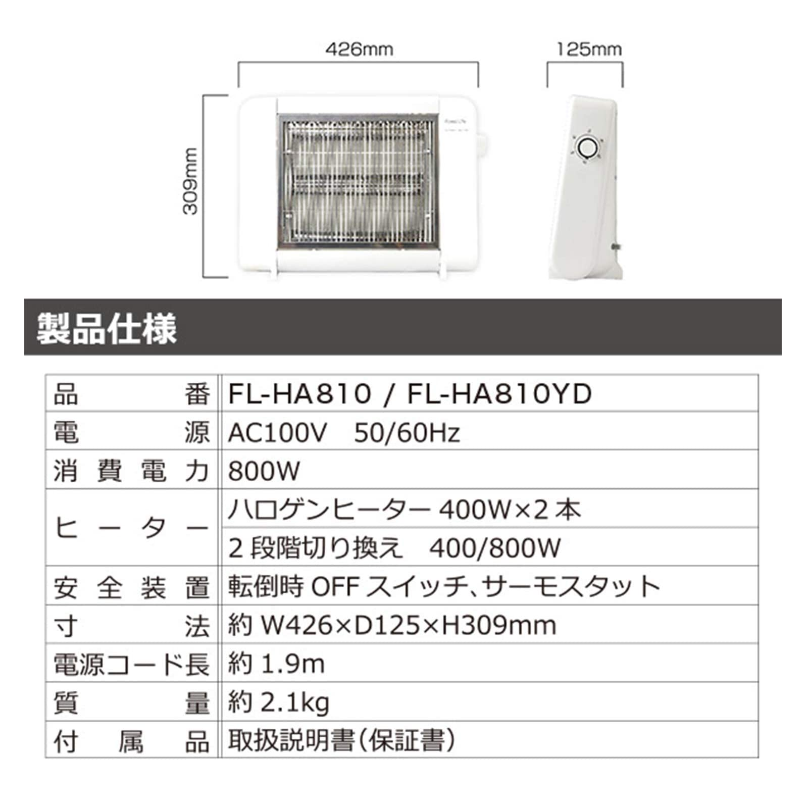 5フィフティ FIFTY 800Wハロゲンヒーター FL-HA810YD