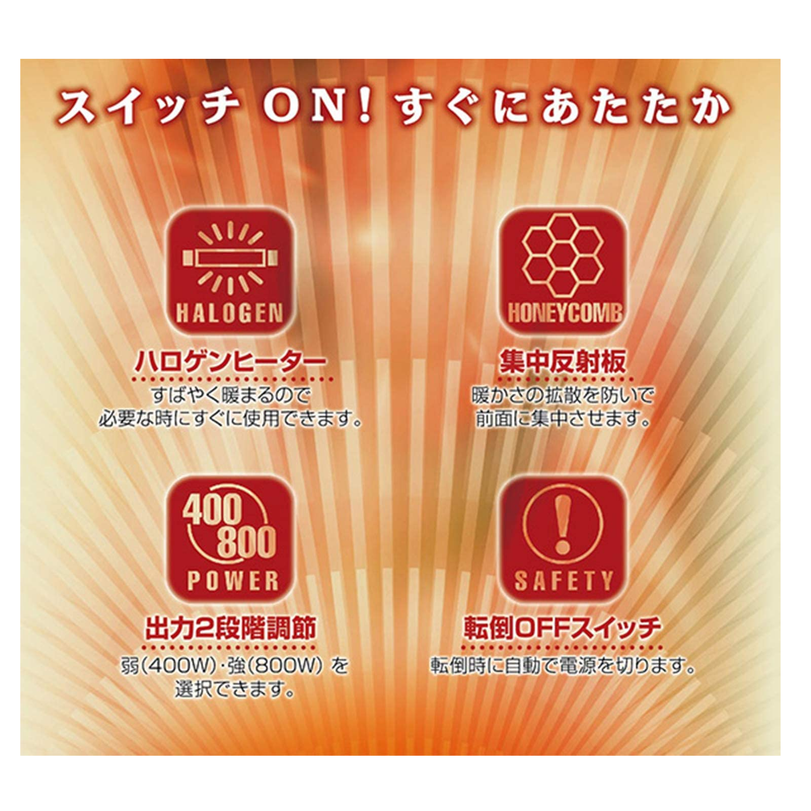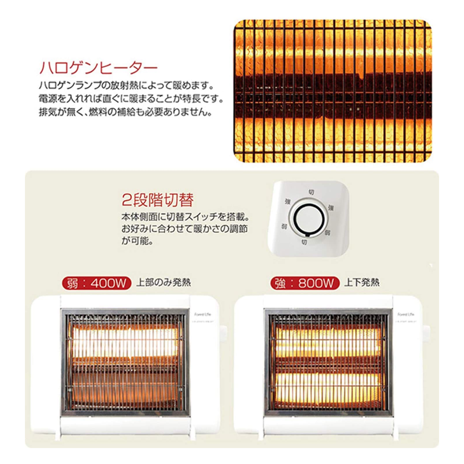 4ホノベ電気 ハロゲンヒーター RD-HH800-WH