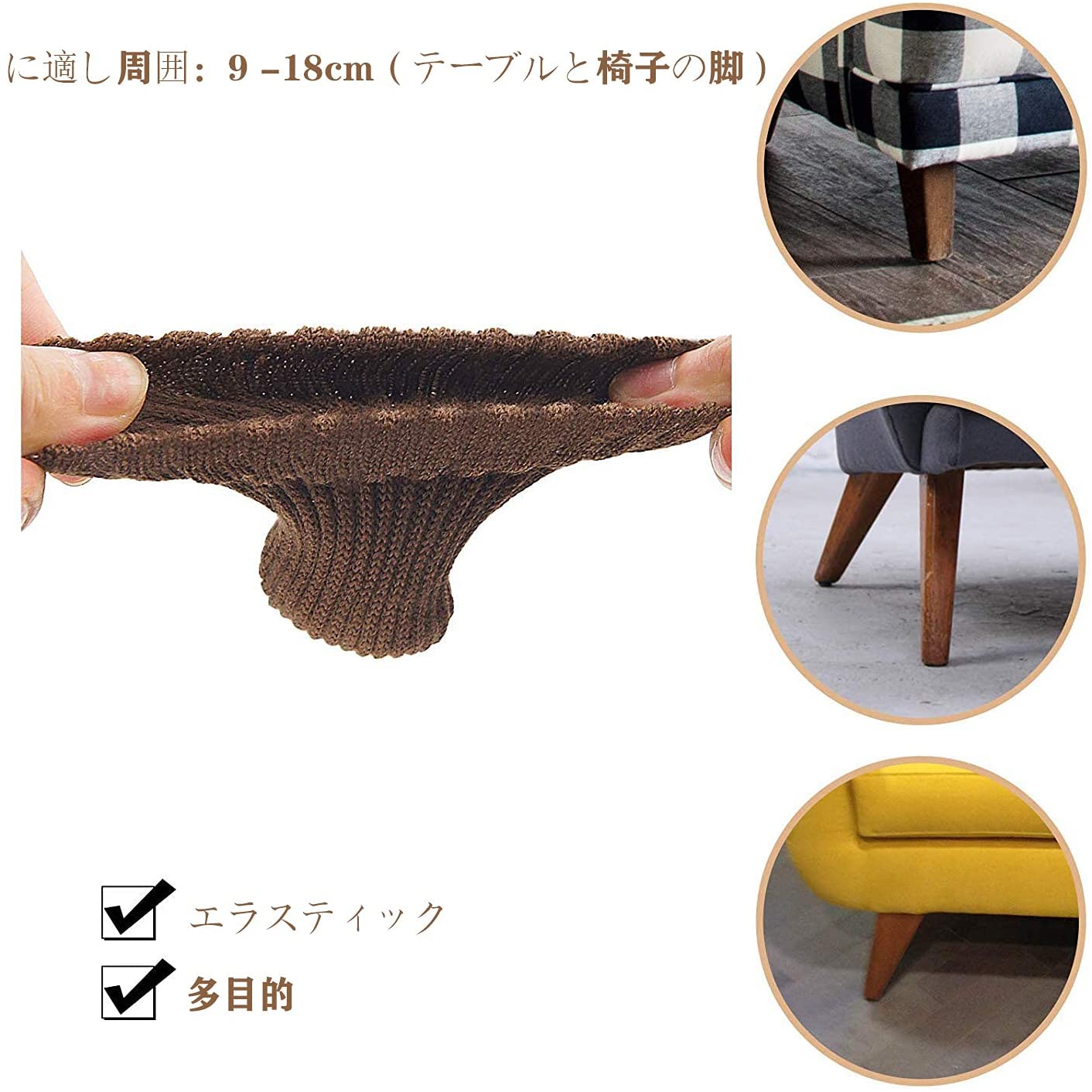 伸縮性のあるニット素材のソックスタイプの椅子脚カバーです。