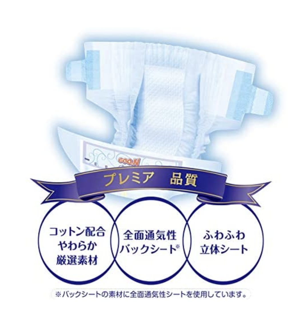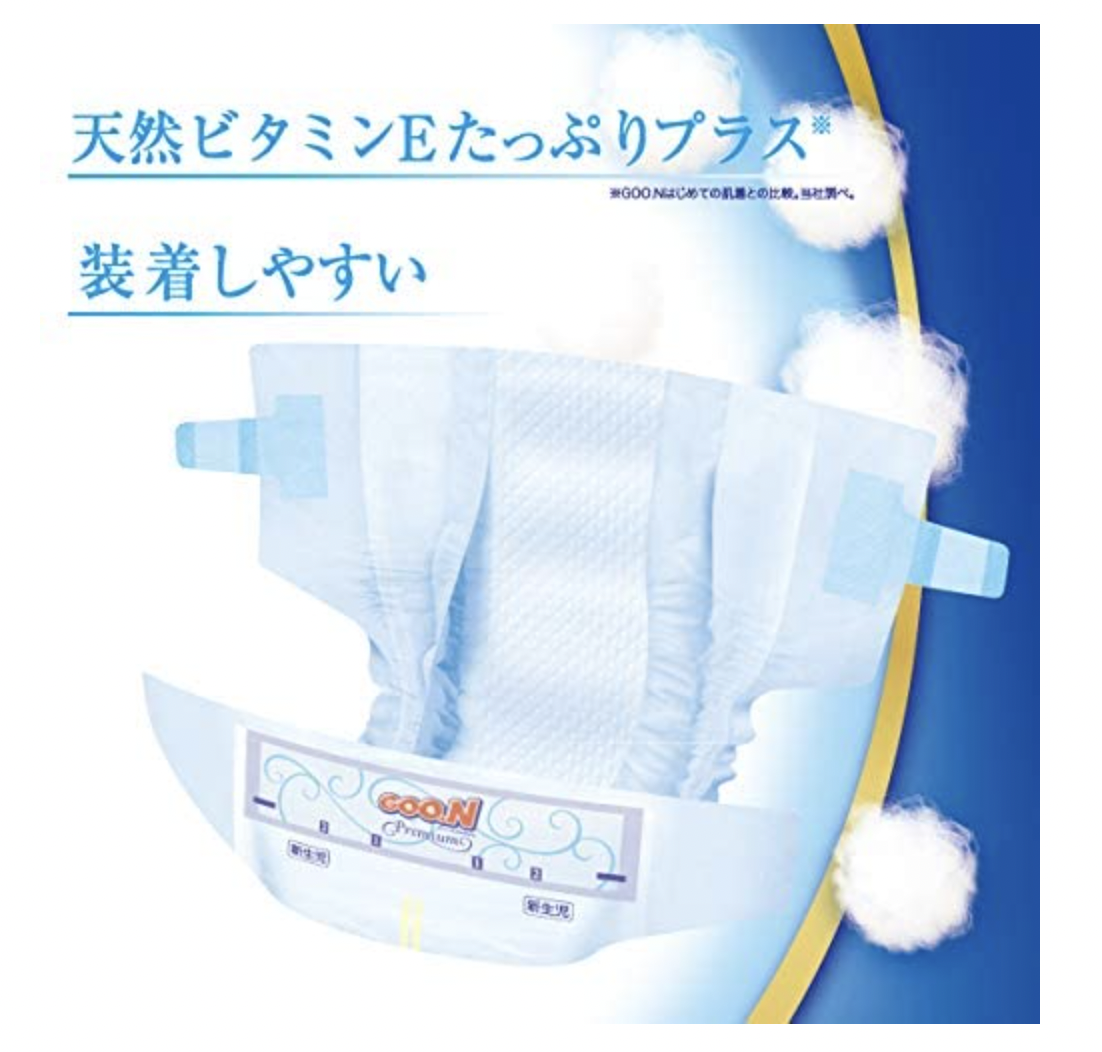 エリエール グーン プレミアム 天使の産着 (お誕生~5kg) 62枚【テープ 新生児サイズ】