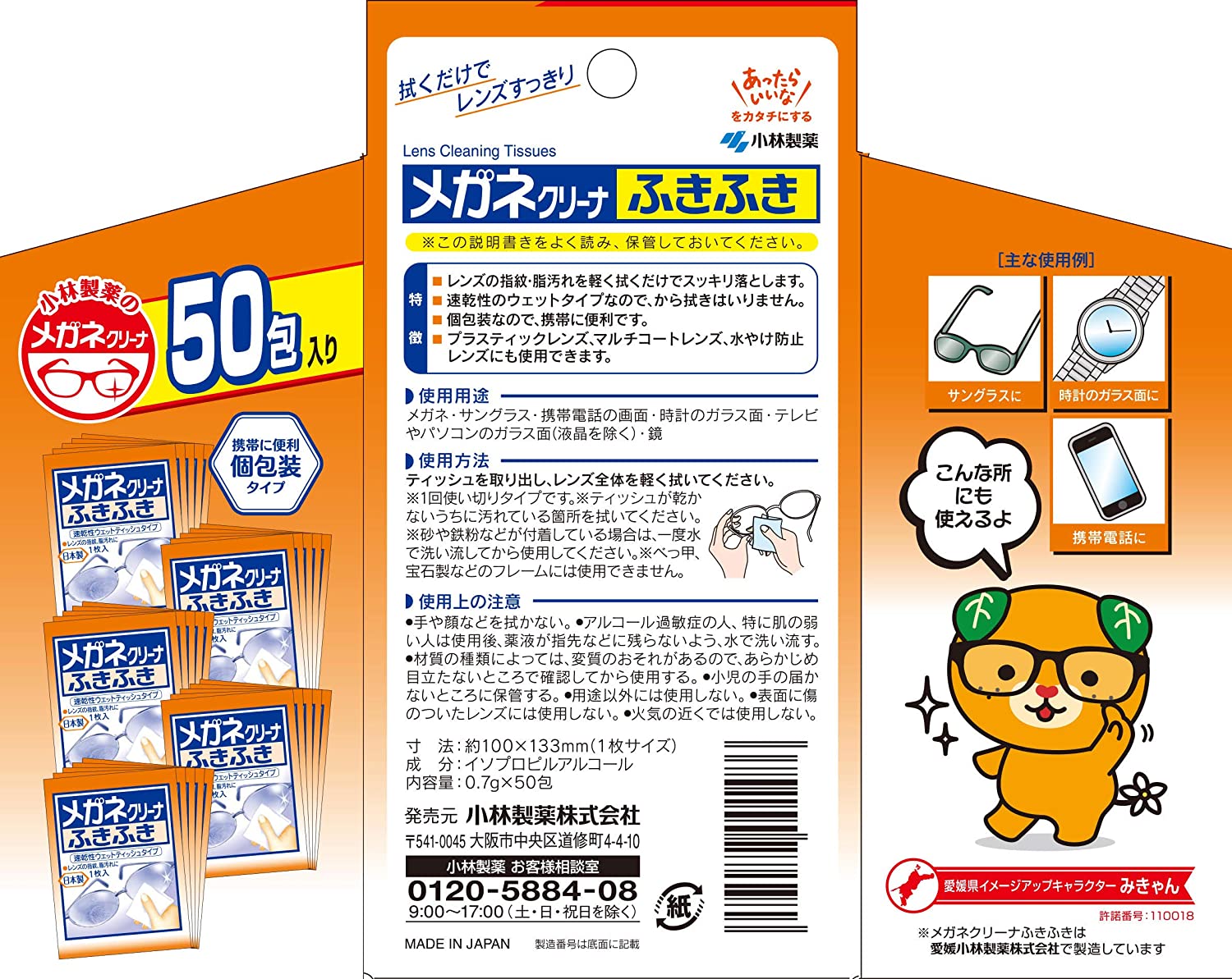 小林製薬 メガネクリーナ ふきふき 50包 (個包装タイプ)