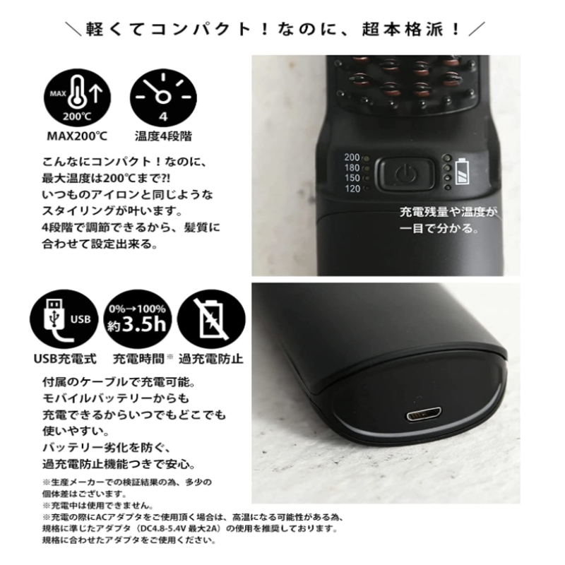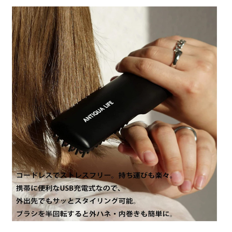 antiqua ブラシアイロン ヘアアイロン コードレス 充電式