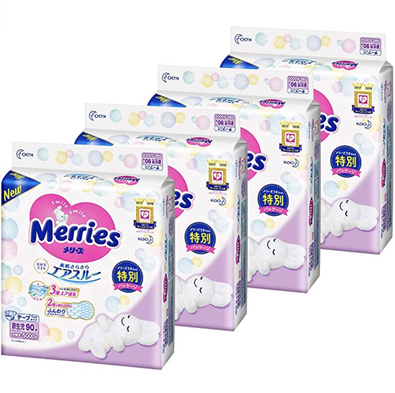 1メリーズ おむつ テープ 新生児5000gまで 梱販売用(90枚*4個セット)