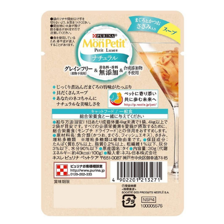 ピュリナ モンプチ キャットフード プチリュクスパウチ ナチュラル スープ 成猫 ささみ入りまぐろとかつお