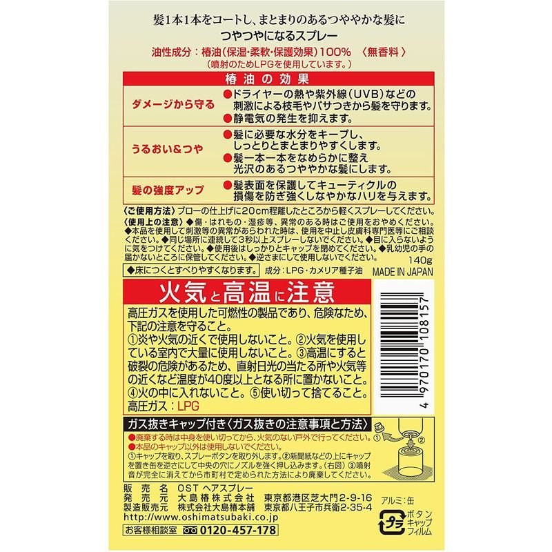 大島椿 OSHIMATSUBAKI ヘアスプレー(つや出し 仕上げ用 椿油) 140g