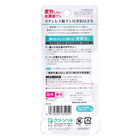 10グリーンベル ステンレス製 クシ付き眉はさみ MI-247