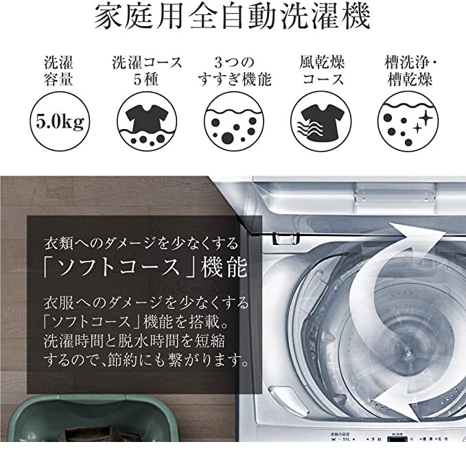 MAXZEN 全自動洗濯機5kg JW50WP01WH p5m20d