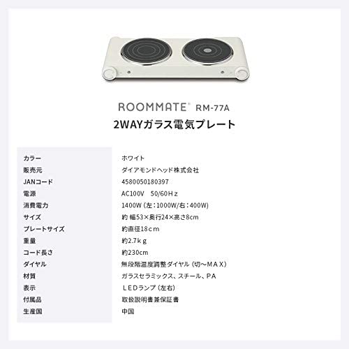 ROOMMATE(ルームメイト) 2WAY ガラス電気プレート RM-77A