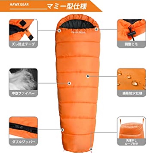 HAWK GEAR(ホークギア) 丸洗いできる寝袋 マミー型