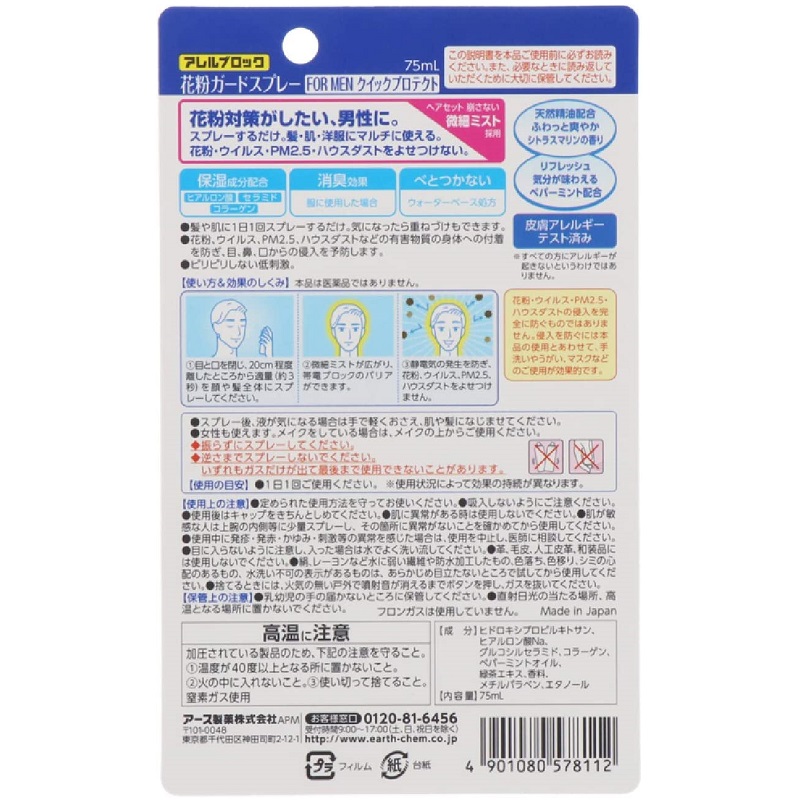 アース製薬 アレルブロック 花粉ガードスプレー FOR MEN クイックプロテクト