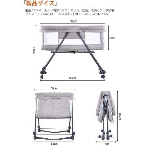 UBRAVOO ベビーベッド ゆりかご ベビーラック
