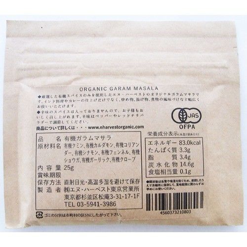N・HARVEST(エヌ・ハーベスト) 有機ガラムマサラ 25g