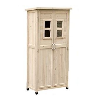 木目がきれいな天然の杉材を使用した物置で塗料にオイルステインを使用し木目の風合いを際立たせています。庭の植物などの緑との色合いのバランスも良く北欧風なガーデニングを演出してくれること間違い無しです。小窓がアクセントになって山小屋のような雰囲気を演出しています。