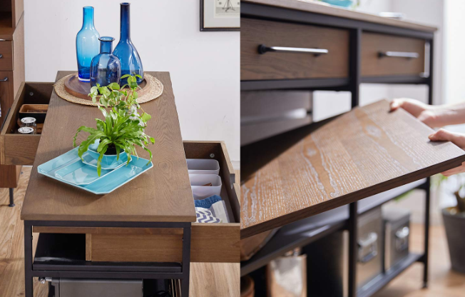 ロータイプなので、上部に電化製品を置いてもいいですし、作業スペースにするのもアリ。天板も天然木の突板を使い木材本来の温かさも感じられます。