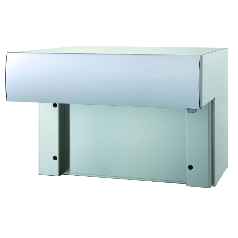 コーワソニアという群馬のポストメーカーの商品で、これは埋め込みタイプのポストです。耐候性に優れた強化ステンレスで、ボックスには郵便物落下機能も付いています。ボックスの蓋は下部がクリアなので、郵便物の有る無しも一目瞭然。