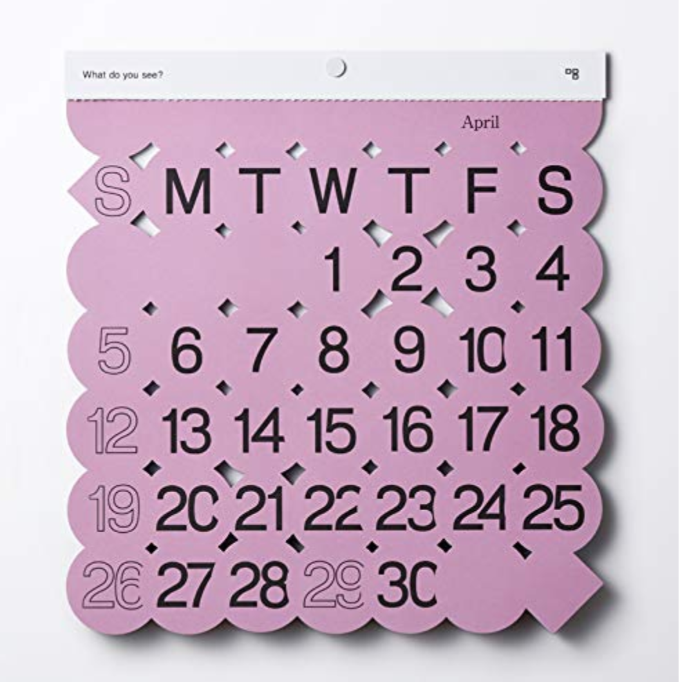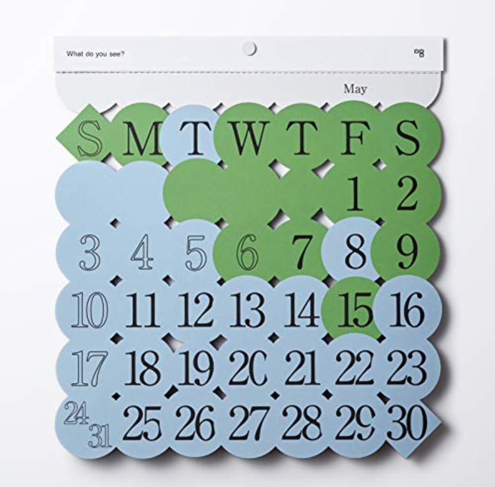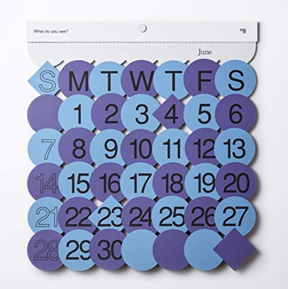 毎月のイメージがデザインされたカラフルなカレンダーです。見る人によってさまざまなものが浮かび上がるので、毎月めくるたびに楽しめます。