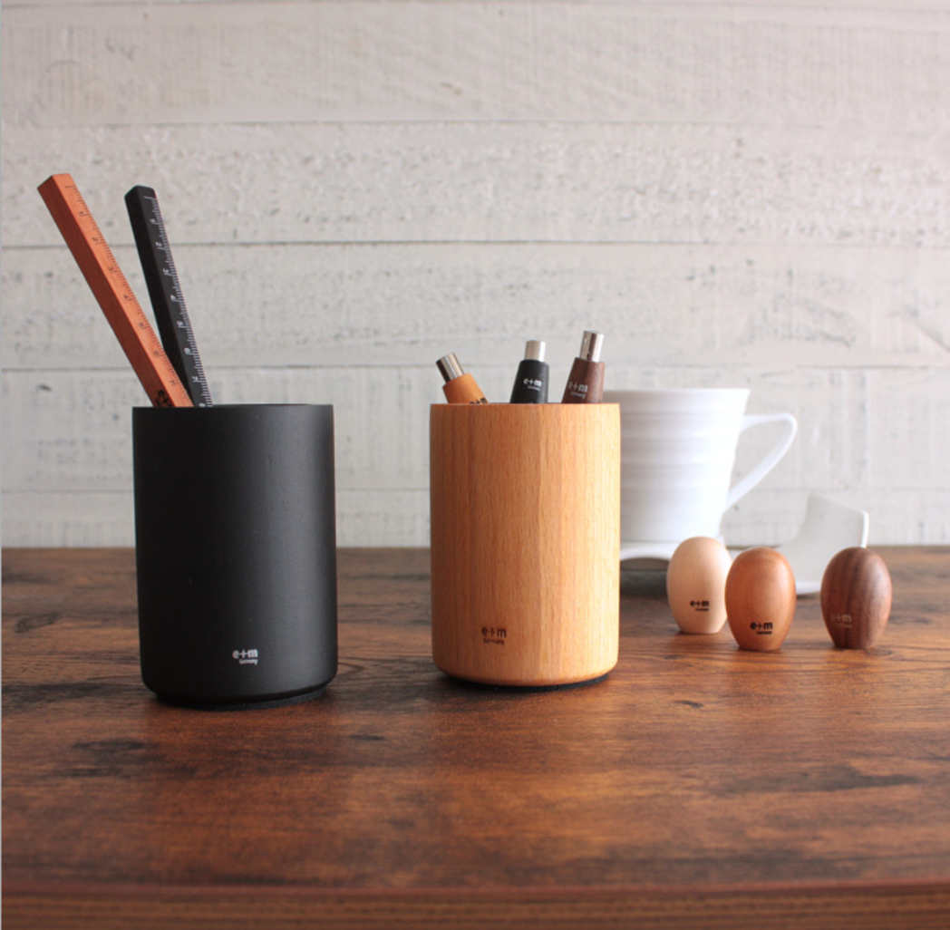 e+m 木製 ペンスタンド ペン立て Pot Potblly