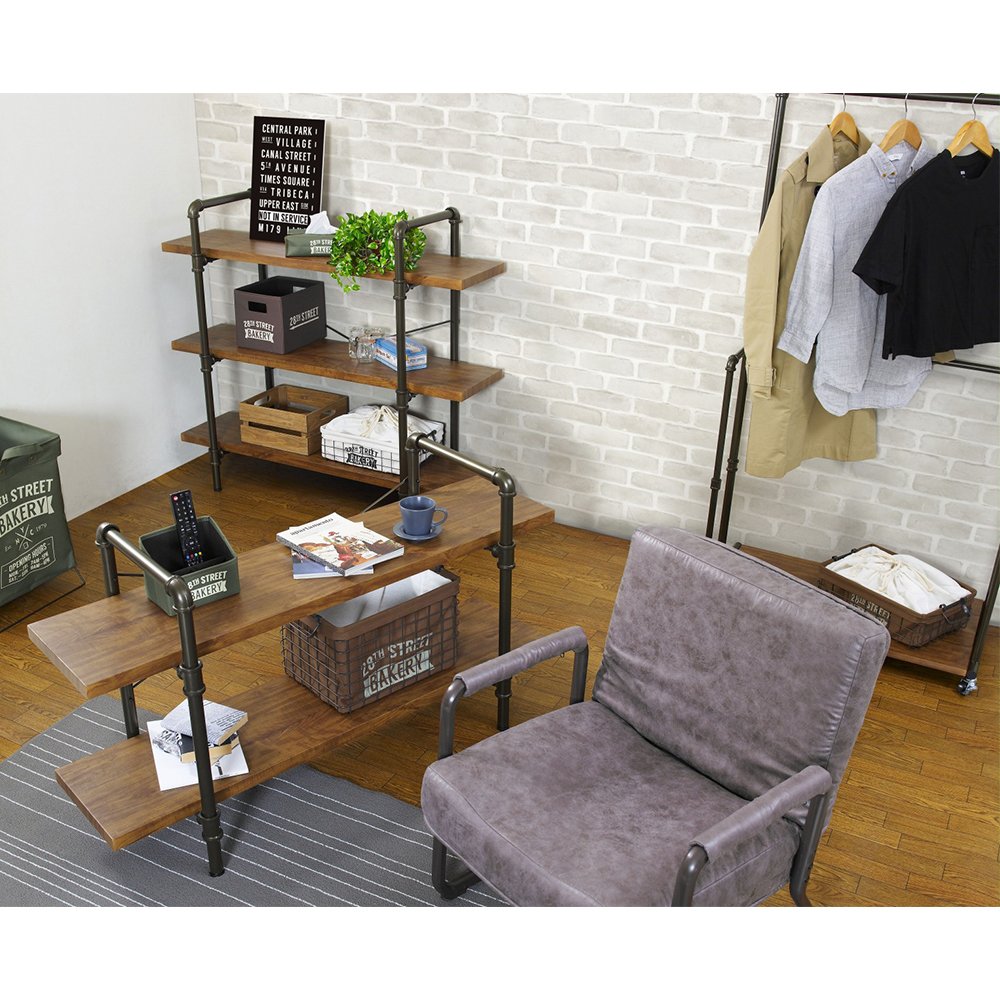 ガス管をモチーフにしたアイアンと、深い色合いの木材との組み合わせで男前な雰囲気に。お部屋が一気にインダストリアルでおしゃれな空間になります。ヴィンテージテイストのお部屋にしたい方におすすめです。